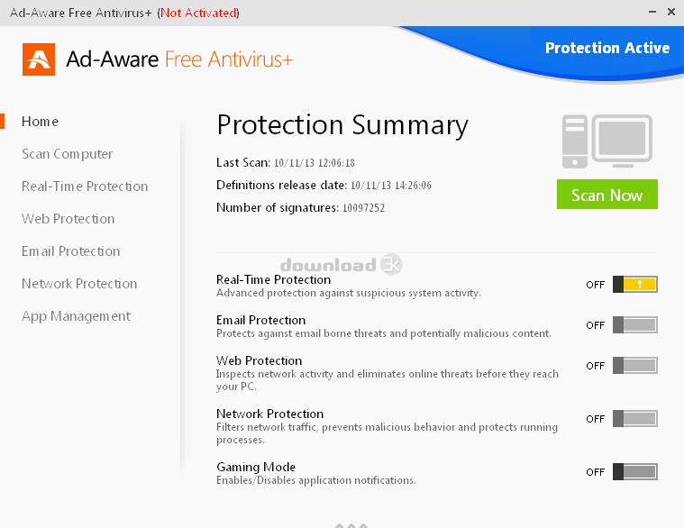 Ad-Aware Total Security gives you real time protection, along with web, email, and network security features. It's a total package program that delivers on its promise to keep you safe through continually updated security definitions. You can download these at any time, and when there's a new virus definition file available, it automatically prompts you to download it.Â