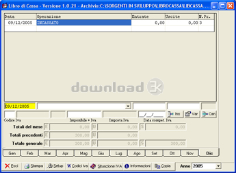Software per la gestione delle entrate e delle uscite da scaricare subito, con totali mese, totali annuali, calcolo credito o debito IVA. Fra le ultime novita' segnaliamo una nuova interfaccia grafica, la possibilita' di impostare il percorso degli archivi, il controllo dell'accesso in caso di utilizzo in multiutenza.What's new in this version: Possibilita' di impostare il percorso degli archivi, fix