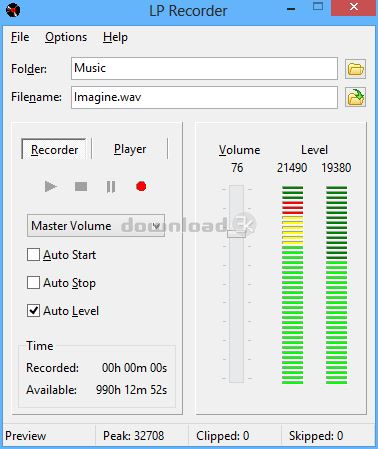 LP Recorder has been designed specifically to record vinyl LPs to CD-standard WAV files. These can subsequently be converted to MP3 files or stored on CD. LP Recorder is an ideal companion program to LP Ripper. Special features of LP Recorder suited to recording vinyl to WAV files include: Automatically adjusts optimum recording levels to avoid distortion. Auto start and auto stop for easy operation. Visual stereo level meters can be used to check recording levels before AND during recording. Level meters are displayed even if not supported by your soundcard etc.Requirements: Soundcard with line-in input