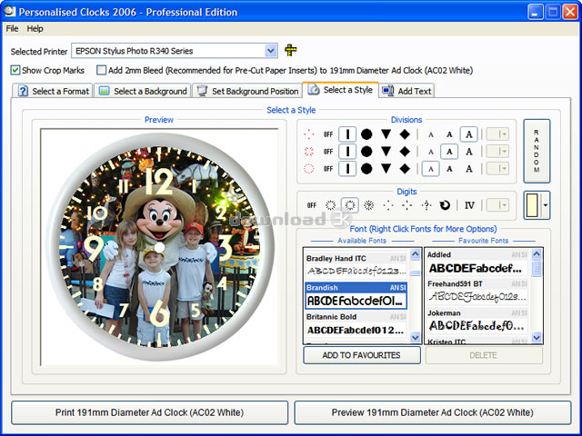 Create A Clock, print high quality personalised clocks using any standard inkjet or laser printer (no special paper required), choose from many different backgrounds or import your own photographs to produce the perfect gift for friends & family or even to start your own business! * Free wall clock with every order * Print using any inkjet or laser printer * Easy to use Interface * Create unique personalised clocks within seconds * Import your own backgrounds and photo's * Easily add unlimited amounts of text, ANY font, ANY colour, ANY style, such as Happy Anniversary * Easily add your own custom clock formats for sublimation printing etc. * Free Product Updates for LIFE!Requirements: 800 x 600 Monitor Resolution