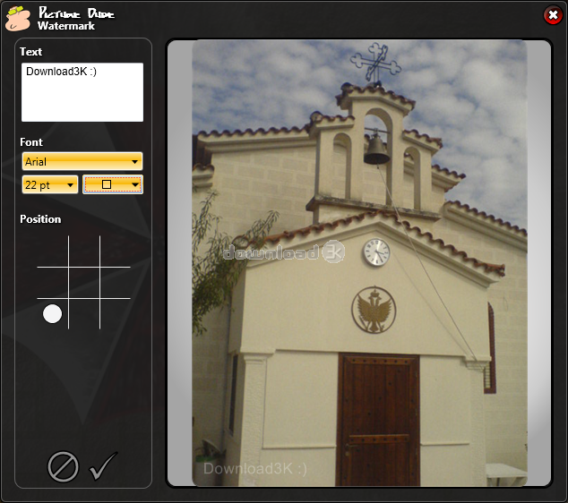 When importing a photo to Picture Dude Image Converter, you have plenty of options regarding its manipulation; you can resize/crop the image, rotate it, adjust brightness, contrast, saturation and gamma levels, add effects (black & white, sepia, watercolor, sketch, glass, emboss, engrave, contour, blur sharpen, pixelize, etc.) or even add a text watermark with the font, size, color and position of your choice. When you’re done editing the image you can choose the desired output file format. The supported types are .bmp, .exr, .gif, .ico, .j2k, .jpg, .pbm, .pdf, .png, .tga, .tif, .wbmp, .wmf and .xpm. Depending on which one you select you can make a couple of settings as well, such as adjust the quality percentage (for .jpg images) or change colormode.