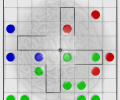In the case of a square, four axes that start at the center of the board have to be lengthened. The player only needs to lengthen one of them. The other three draw themselves automatically in a centrally symmetric way. The path they follow will hardly ever be a straight line but a winding polygonal trajectory. Once the axes reach the edge, the square is divided into four symmetric zones.