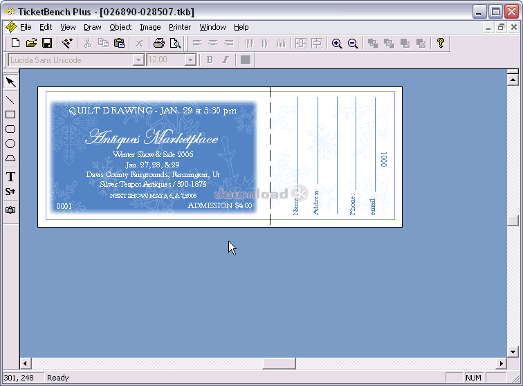 "Ticket design and printing software"