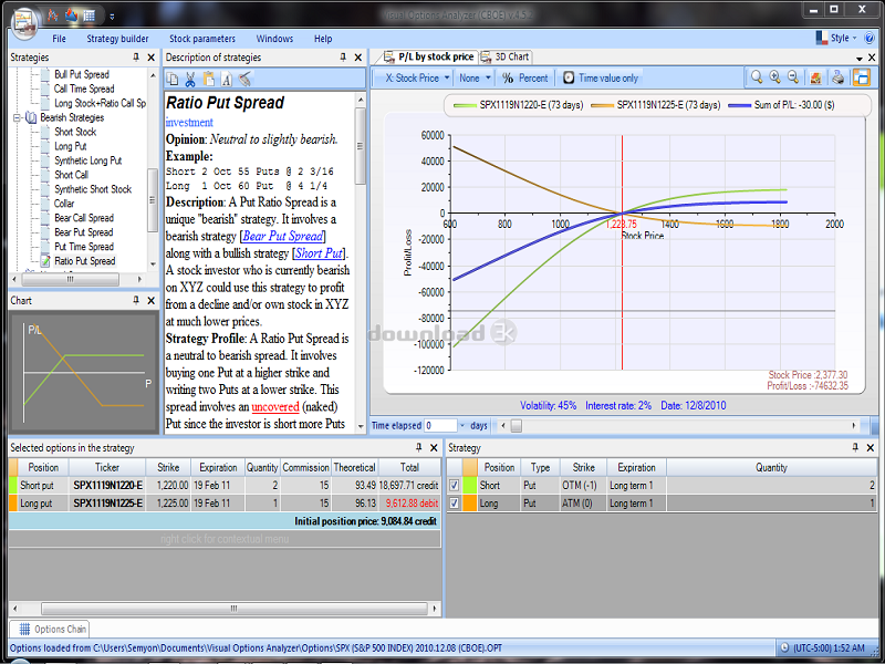 Visual Stock Options Analyzer (VOptions) is a powerful analysis tool for development, testing, and application of stock and options strategies. Its easy-to-use interface allows you to test new strategies, manage a growing portfolio, and explore "what-if" scenarios with ease. VOptions versatility and power make it suitable for new, experienced, or advanced traders alike.Advanced Charting Capabilities
