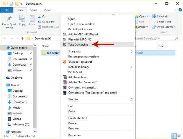 6. You can use the provided registry files to add the “Take Ownership” option under Windows 10, 8, 8.1, 7 and Vista.